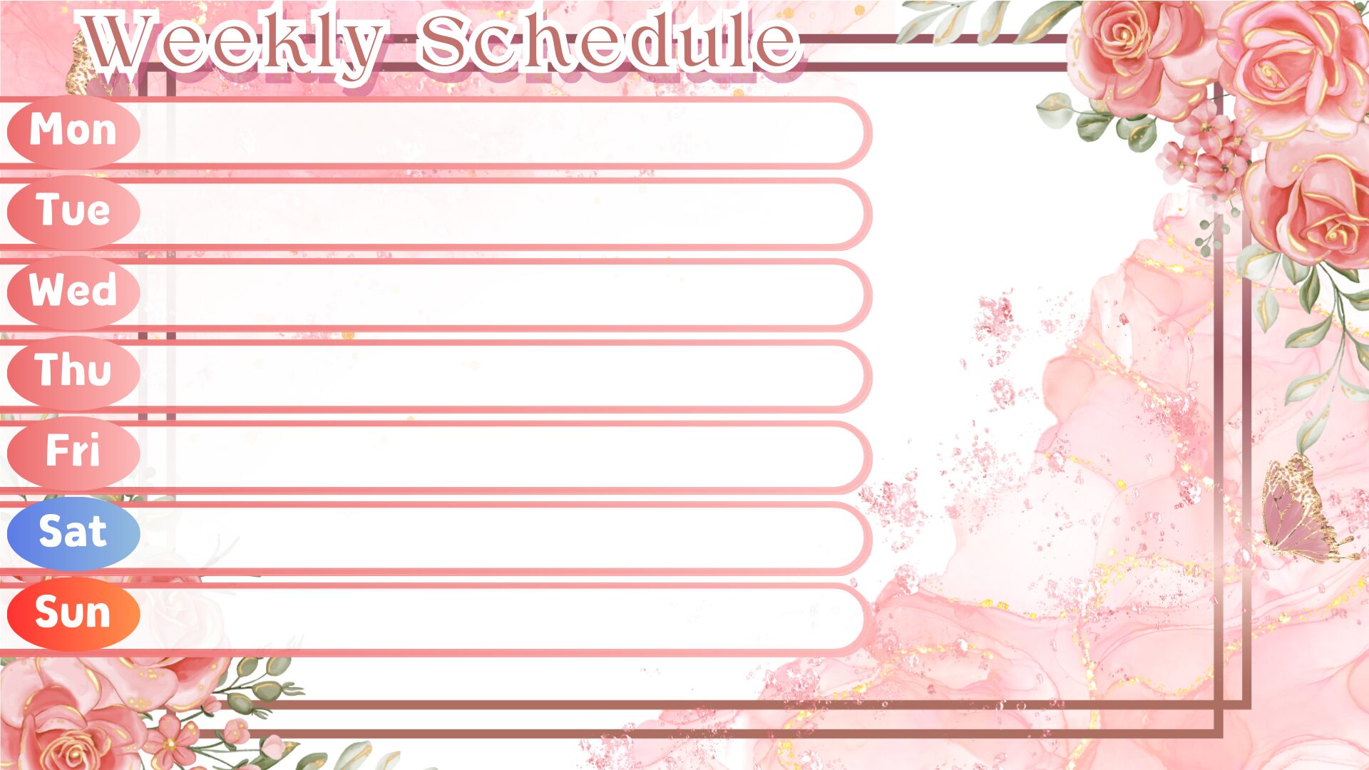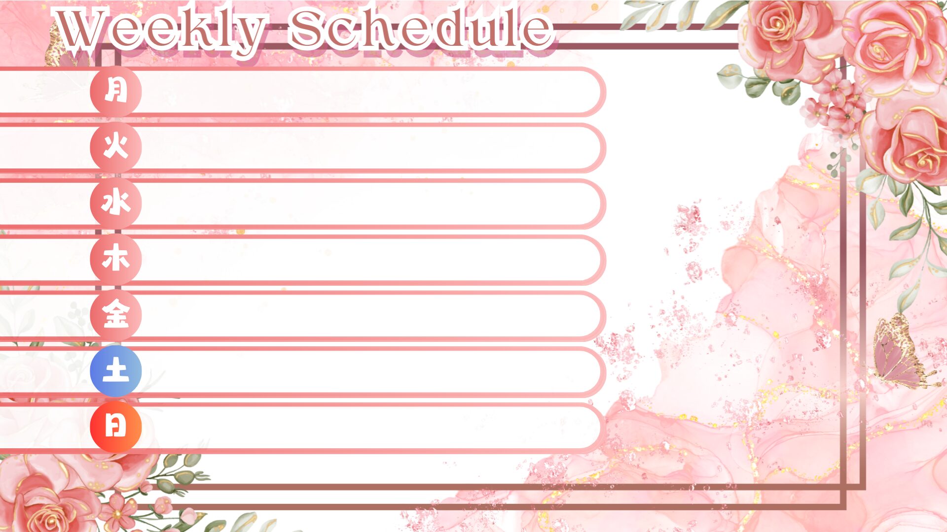 薔薇モチーフの週間スケジュール素材です🌹✨