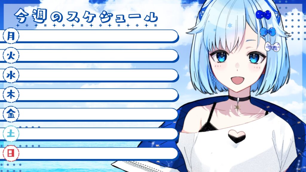 配信予定やイベントのお知らせに使いやすい、シンプル&爽やかなデザイン◎