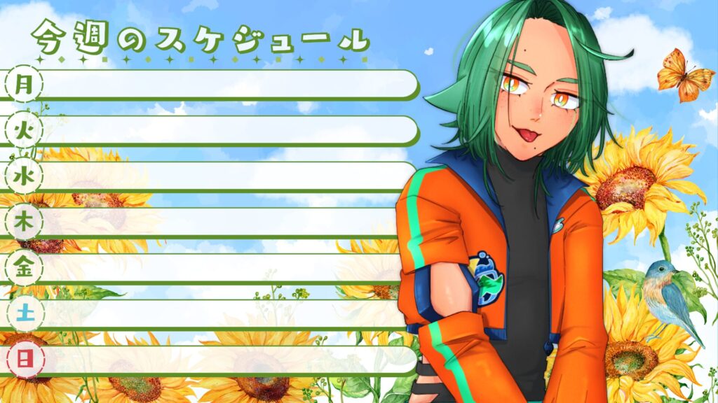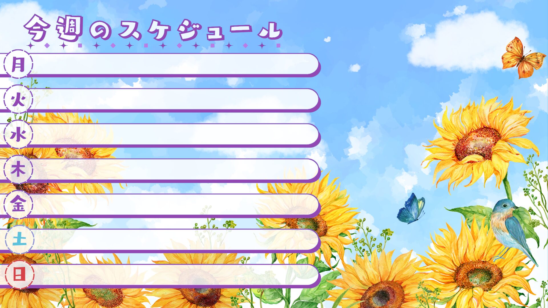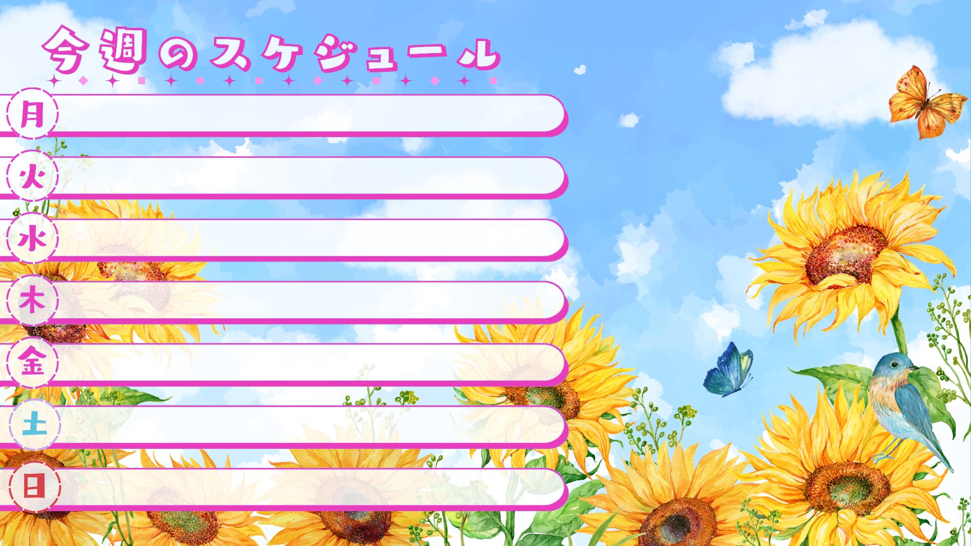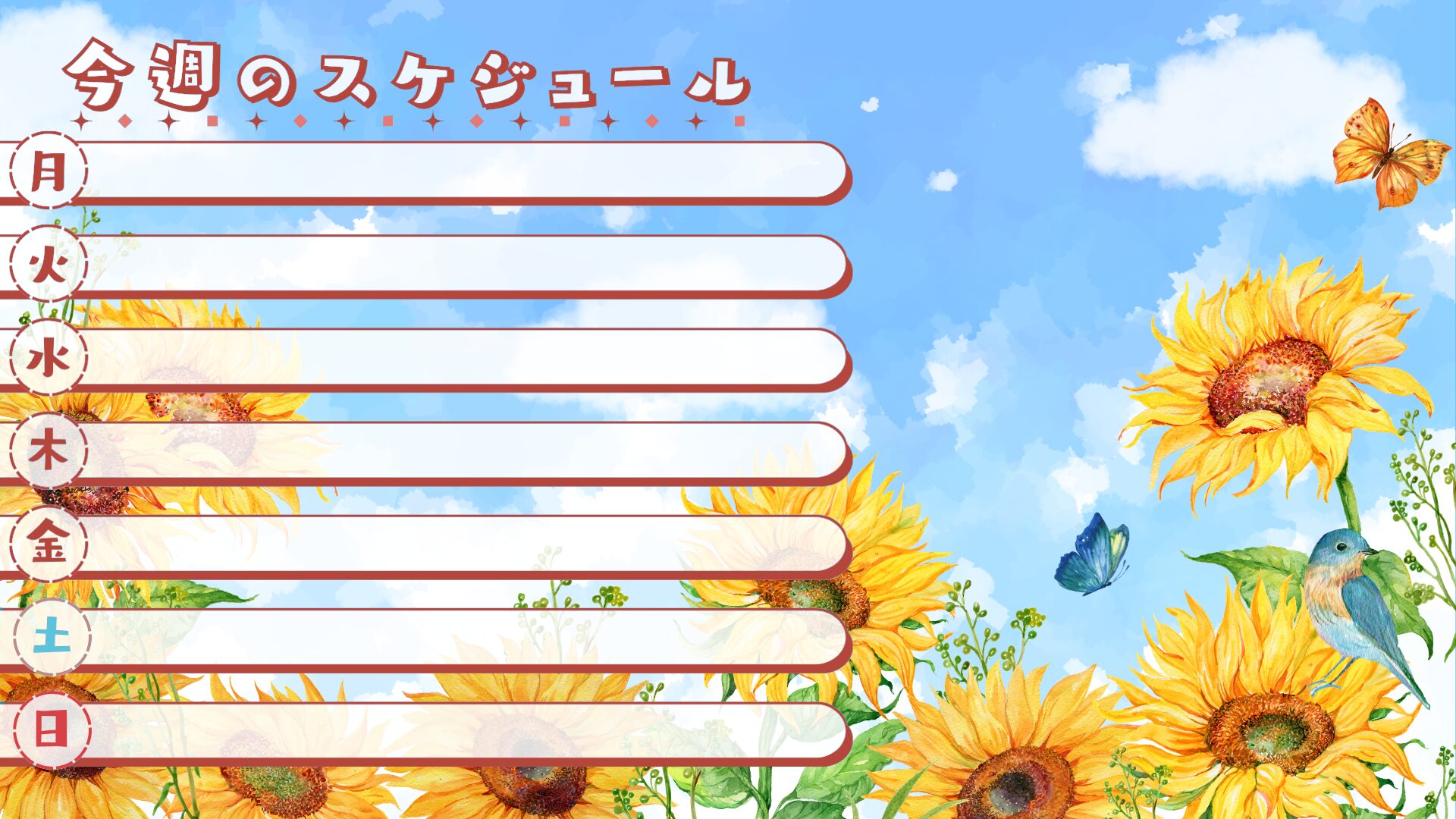 元気いっぱいのひまわりが映えるデザインで、配信予定やイベント告知にぴったり◎
